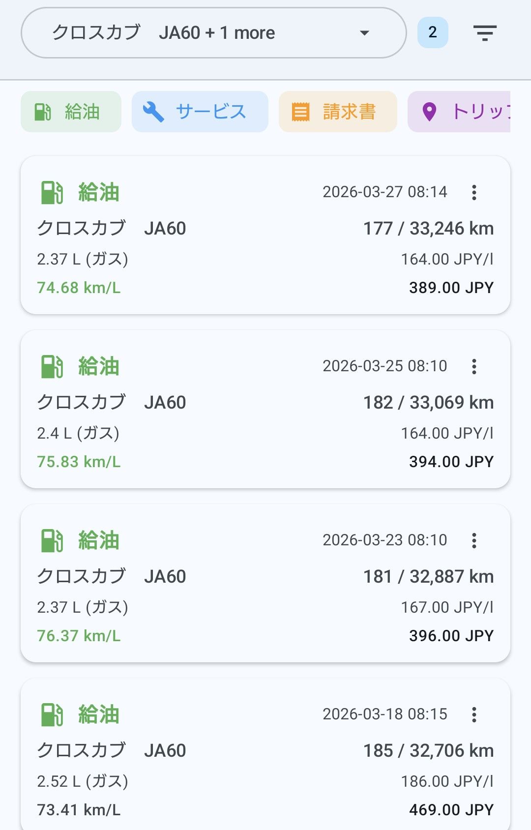 クロスカブ日記 クロスカブ、ボアアップ、スプロケット16T化後の燃費 クロスカブの燃費、すごい!!毎日の通勤使用でリッター75㎞。これはすごい。スプロケットを交換して誤差が出ているが、パルス変換器で補正している。現在はメーターとサイコンの数値が181と183キロの差12/12以前は187と190だったのでだい... 2026.04.05 クロスカブ日記