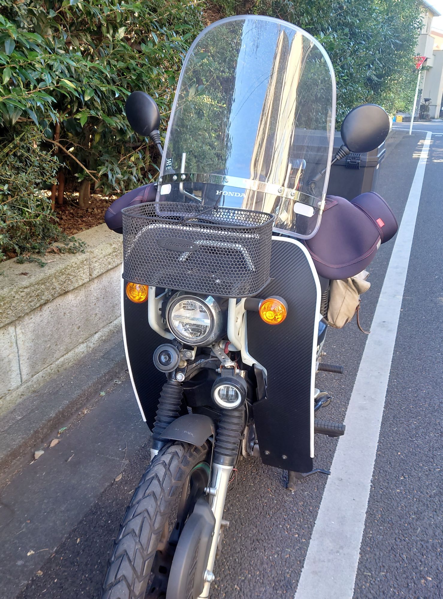 この風防は真夏も常設している。というのも走行中にあたる風は結構体力を消耗するのだ。