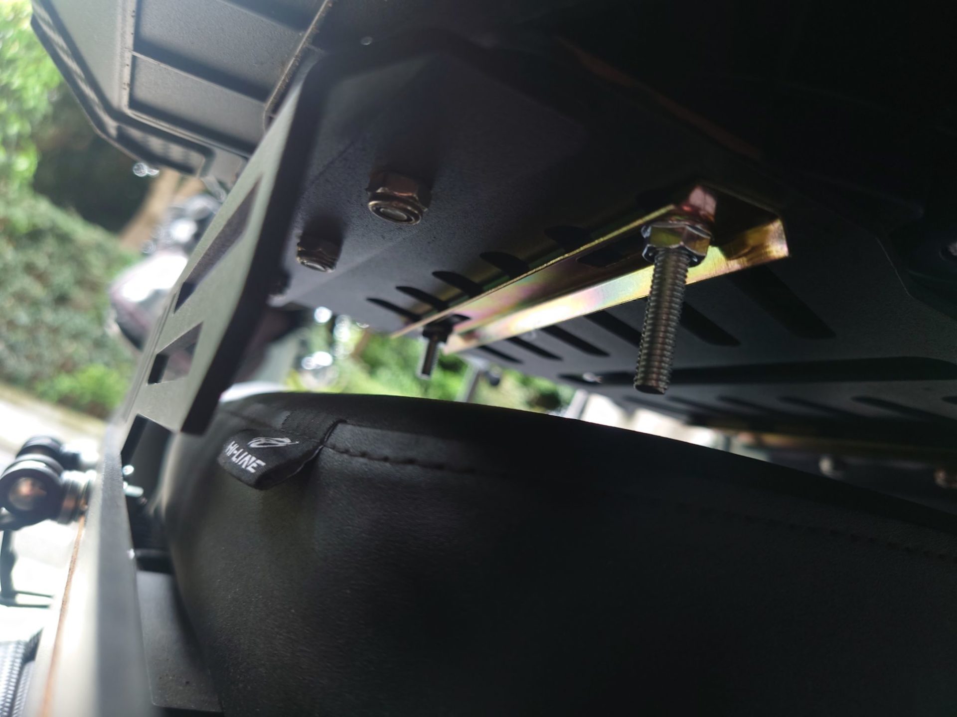 ピリオンシートに刺さらないか心配だったが大丈夫だった。でも追々短いボルトに変更しようかと思う。