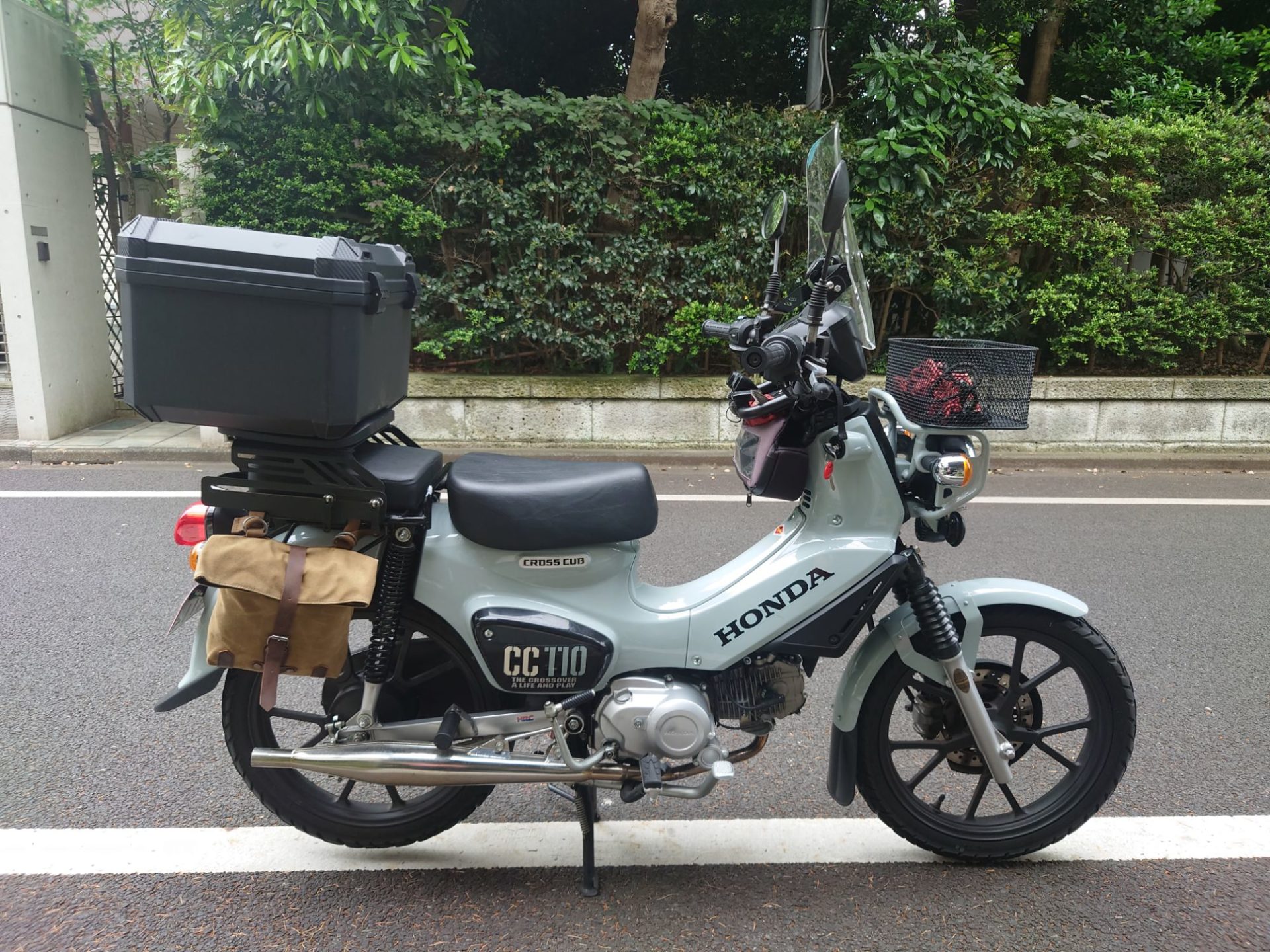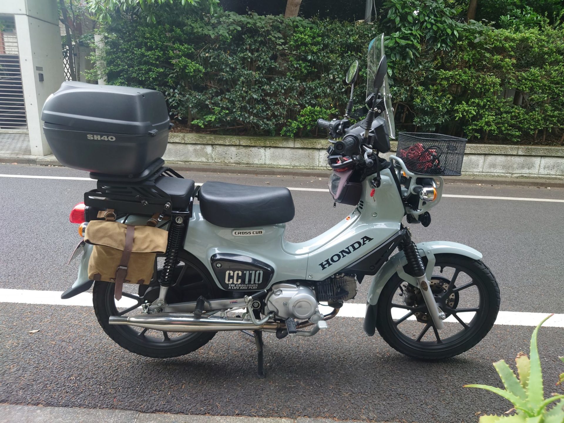 クロスカブのリアボックス。SHADの40Lを使っていたが意外と使いづらい。