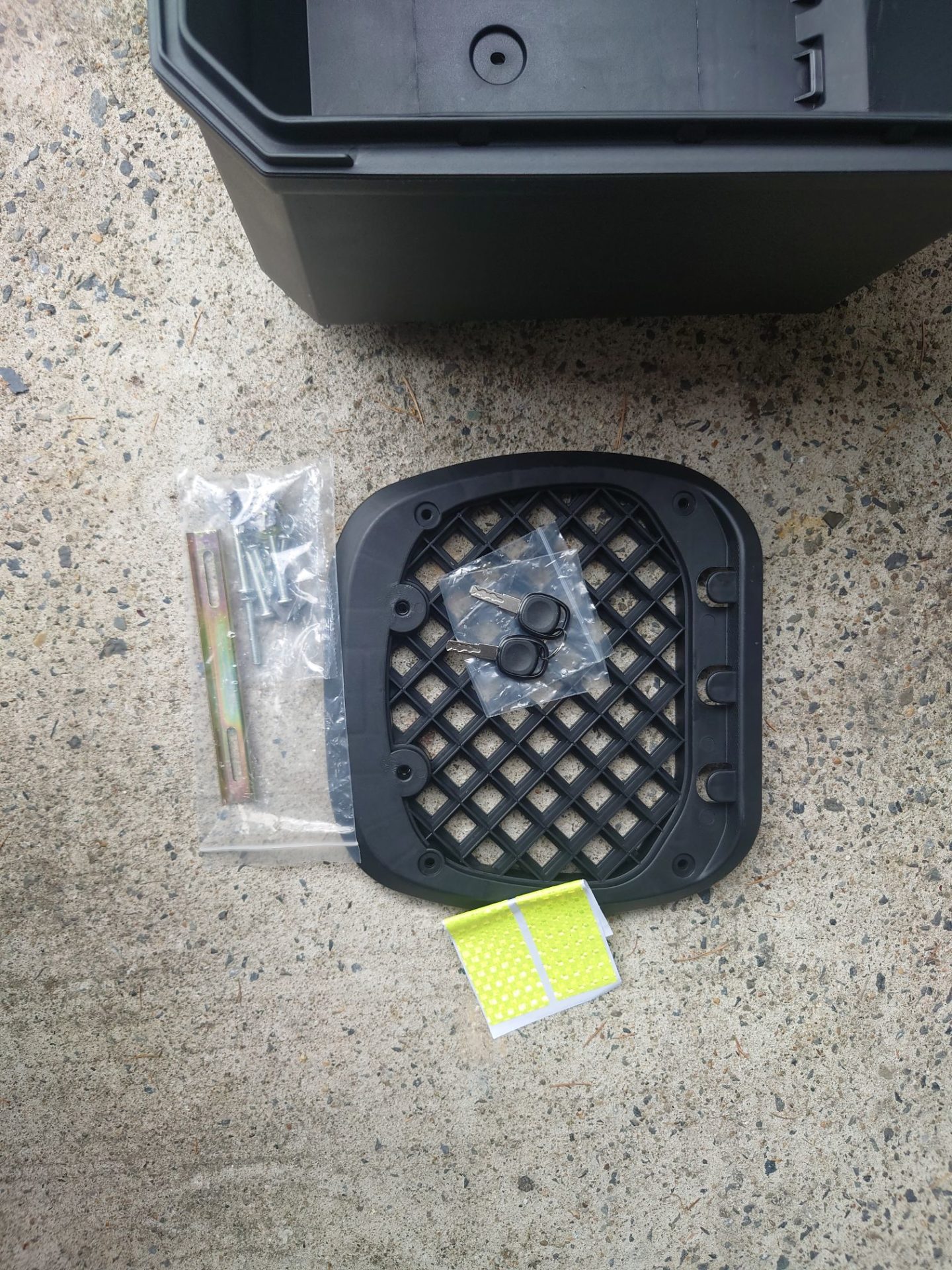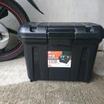 先代WAVE125iにはアイリスのいわゆる「ホムセン箱」を取り付けていたのだけれど、これはこれでよかったのだけど元々リアボックスではなかったから加工が必要だったのと、強度の確保のために内部に段があって容量が物足りなかったのだ。今度見つけたボックスは積載力がありそうで期待できる。では取り付け行ってみよう!