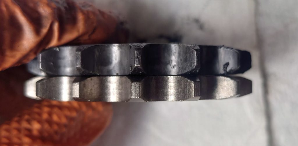 取り外したチェーンはリンクが固い部分があり、動きがぎこちなくフリクションも相当だったろうと推測。