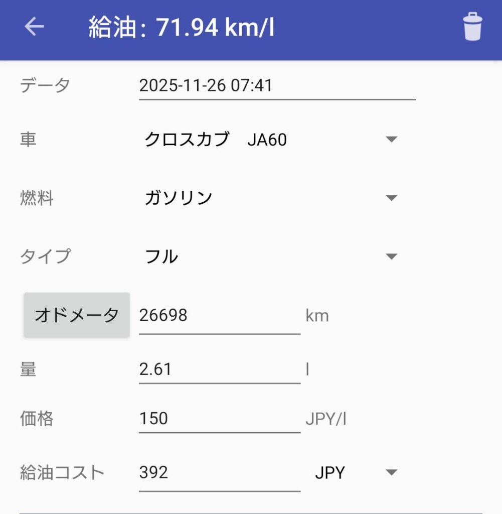 オイル交換の前に60kmほど走ってるし給油量の誤差もあるから何ともいえないけど10w-40でも落ち込んではいなかった。今後に期待。