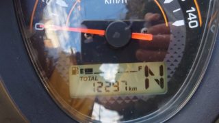 はるばる浜松からやってきたクロスカブ。中古車ということでどのようになっているのか見ていきます。まずは受け取り時点の走行距離。12297km。ここからスタートです。まず目を引くのがマフラーキタコ クラシックダウンマフラーノーマルマフラーも一緒...